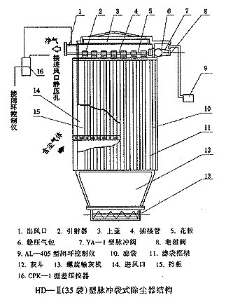 HD(HZ)-Ⅱ2-12型環隙噴吹脈沖袋式除塵器,采取環隙噴吹原理,氣流引射量大,清灰效果好單機可以組合范圍2-12個單元,適用于冶金,鋼鐵,化工,糧食,建材,礦山,軍工等單位.