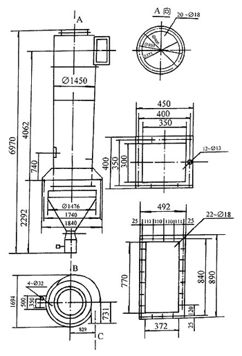 1、本除塵器可由單筒及數個單筒組合使用,單筒處理風量為15000-18000m3/h。