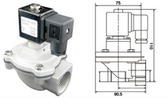 DMF-Z型直角式電磁脈沖閥(又稱直角式電磁閥,直角式脈沖閥,直角式閥),進出氣口連接孔為寸制管螺紋結(jié)構(gòu)。