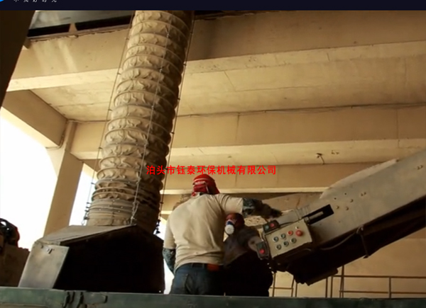 水泥廠多采用自動裝車機(jī)進(jìn)行袋裝水泥裝車,來提高袋裝水泥裝車速度和工作效率,但由于皮帶機(jī)出包溜板與汽車車廂存在約1.5m左右的高差,裝車時必然造成碼包周邊揚(yáng)塵,且粉塵特點(diǎn)范圍大、濃度低。 針對上述揚(yáng)塵問題,我公司研制袋裝水泥裝車機(jī)除塵器,利用與裝車皮帶機(jī)協(xié)同作業(yè)的吸塵罩捕集揚(yáng)塵,再經(jīng)氣箱脈沖布袋除塵器進(jìn)行過濾,從而降低大氣粉塵含量,達(dá)到我國粉塵排放標(biāo)準(zhǔn),改善裝車工作環(huán)境。