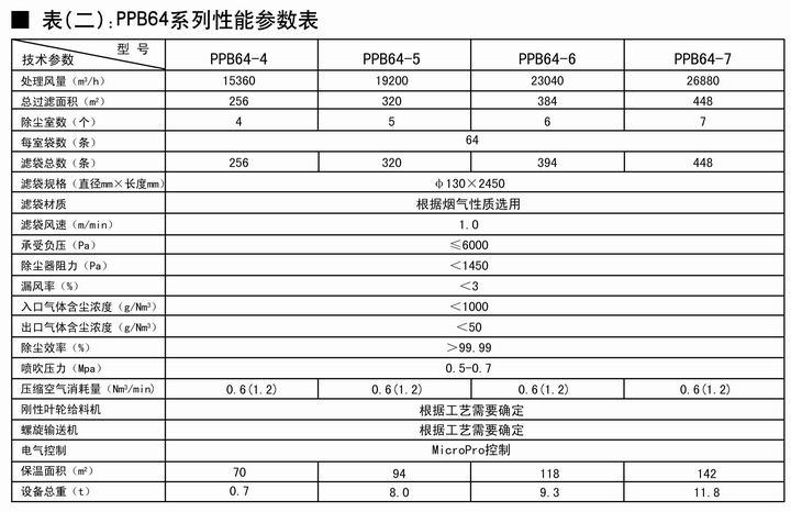 本系列除塵器由殼體、灰斗、排灰裝置、支架和脈沖清灰系統等部件組成。當含塵氣體從進風口進入除塵器后,首先碰到進出風口中部的斜隔板,氣流便轉而流入灰斗,同時氣流速度變慢,由于慣性作用,是氣體中粗顆粒粉塵直接落入灰斗,起到預收塵的作用。進入灰斗的氣流隨后折而向上通過濾袋,粉塵被捕集在濾袋的外表面,凈化后的氣體進入箱體上部的清潔室,最后匯集到出風管排出。殼體用隔板分成若干個獨立的箱室,當除塵器運行阻力達到預先設定值時,清灰程序控制器發出指令,除塵器就按照預定的時間間隔對每室輪流進行清灰。清灰時各室的提升閥關閉,切斷通過該室的過濾氣流,隨即該室的大口徑脈沖閥開啟,向濾袋內噴入高壓(一般為0.5~0.7mpa)壓縮空氣,清除濾袋外表面附著的粉塵。當此動作完成后(約10~15秒),出口管上的提升閥新打開,使該室重新進入過濾狀態。其它箱室同樣按述動作逐一進行直至全部清灰完畢。各箱室的脈沖噴吹寬度和清灰周期同專用的清灰程序控制器設定。